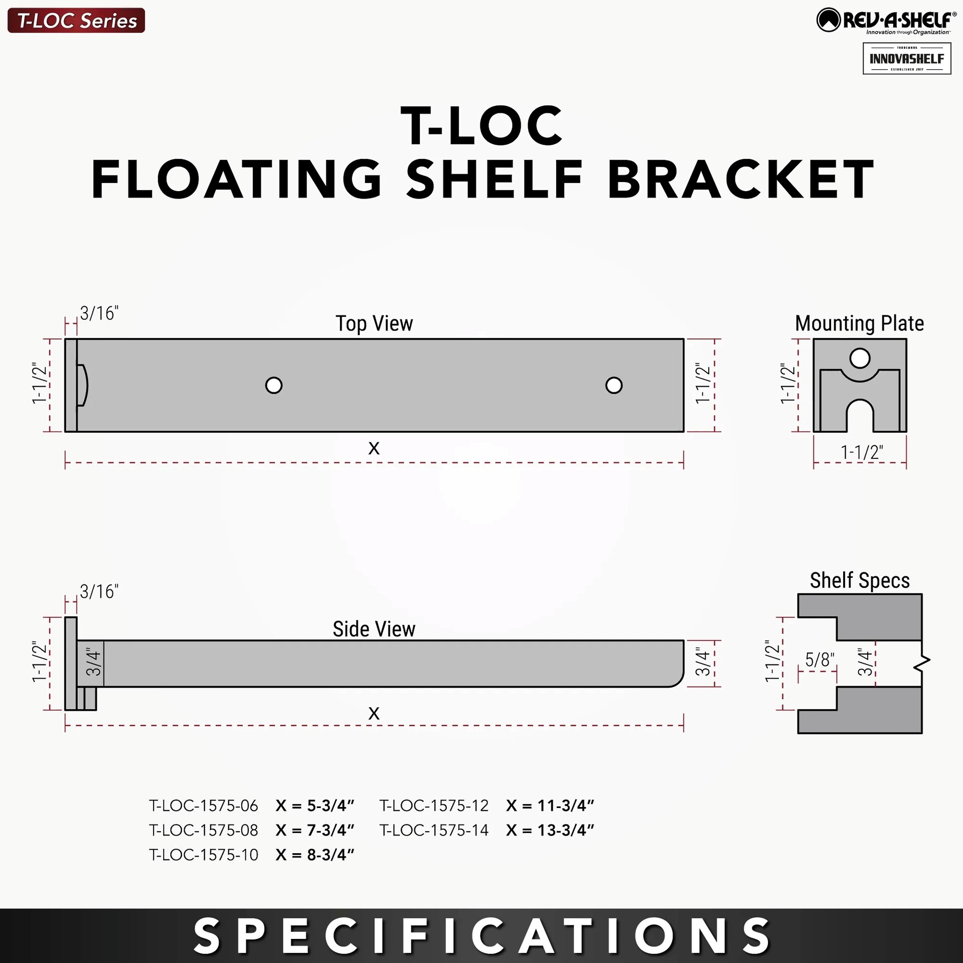 - Designed for shelves 2" thick or more