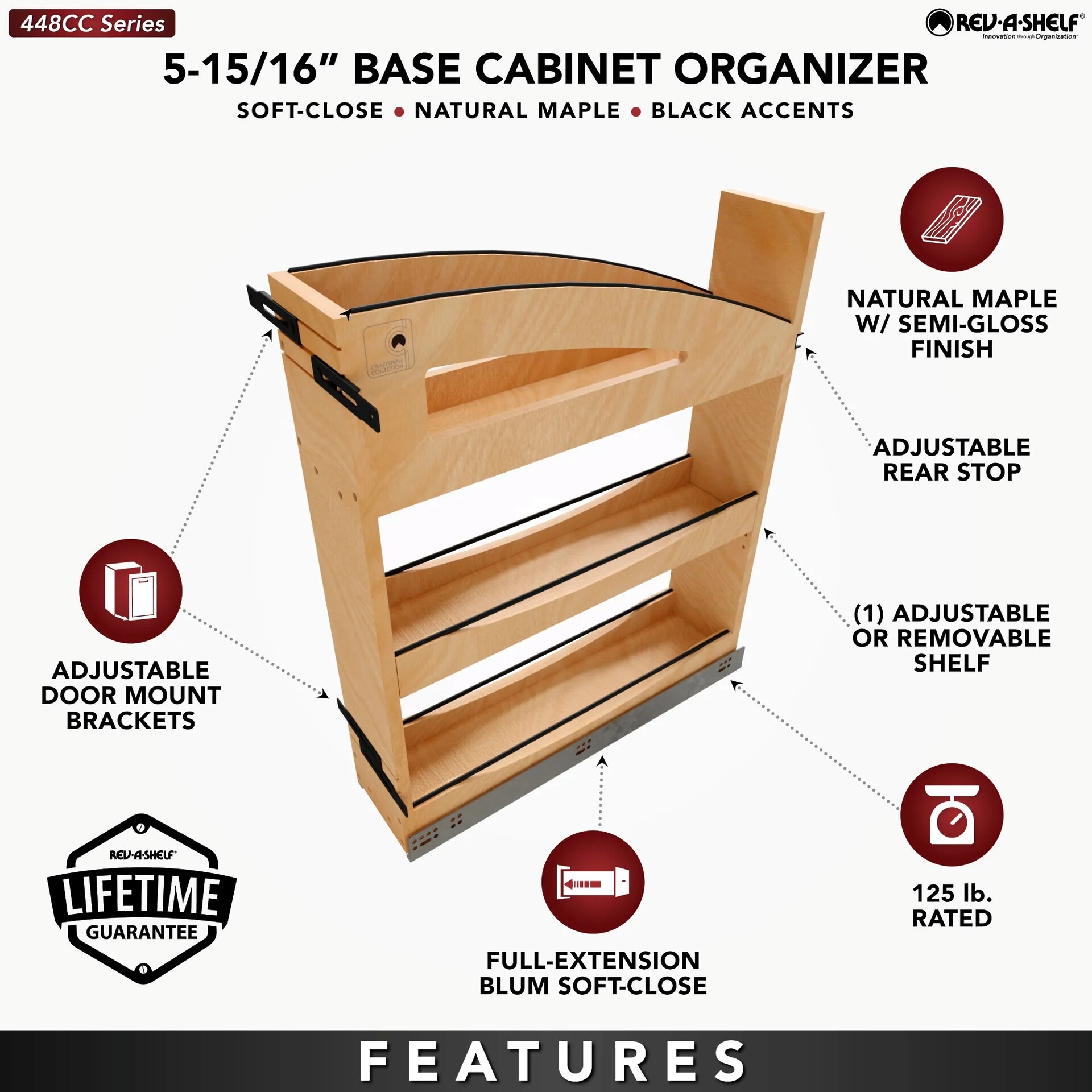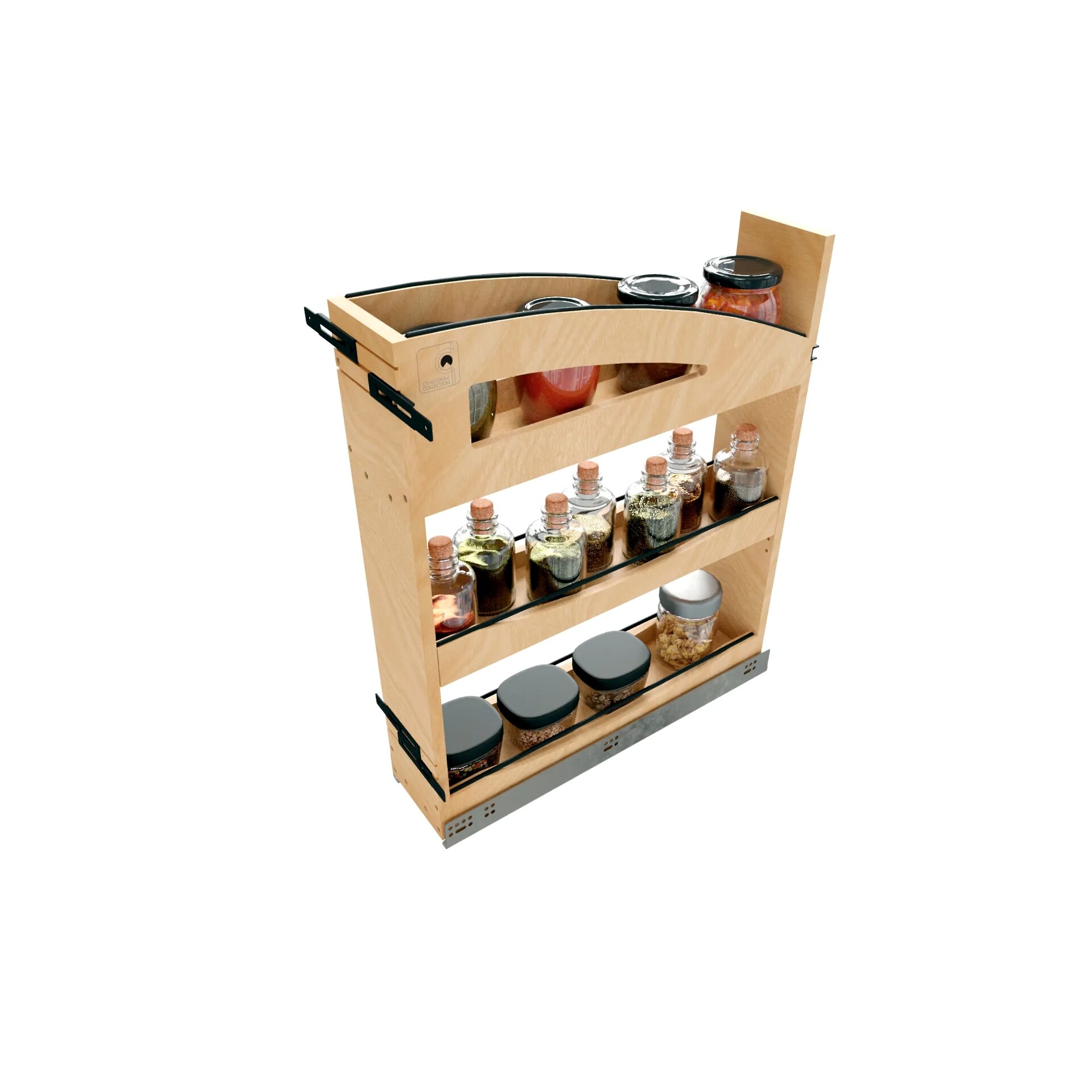 5" Craftsman Collection Solid Maple Base Cabinet Pullout Organizer w/ Black Accents and BLUM Soft-Close Slides