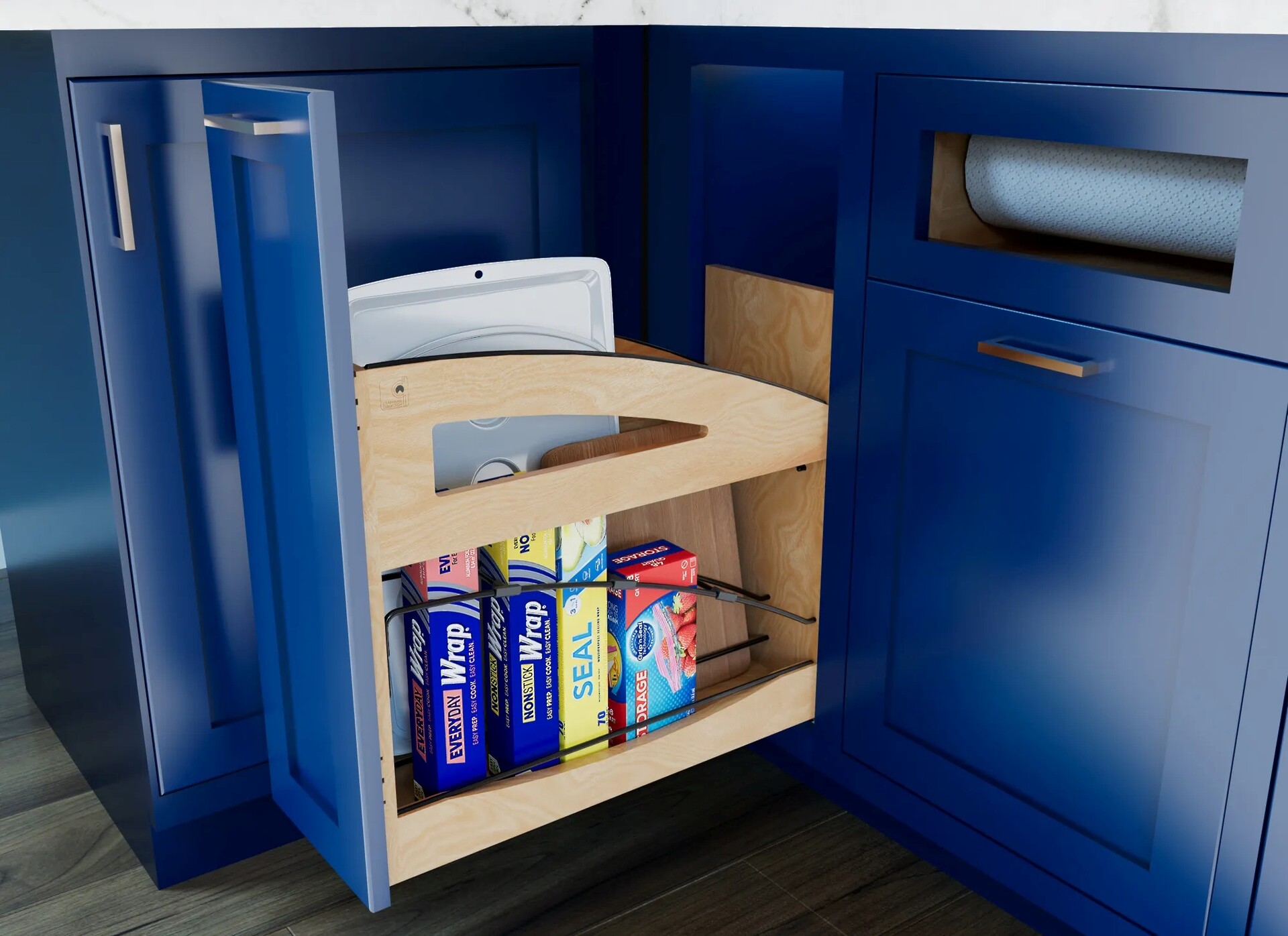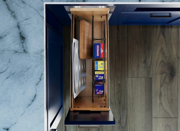 8" Craftsman Collection Base Cabinet Pullout with Tray Divider / Foil Wrap Holder with Blumotion Soft-Close