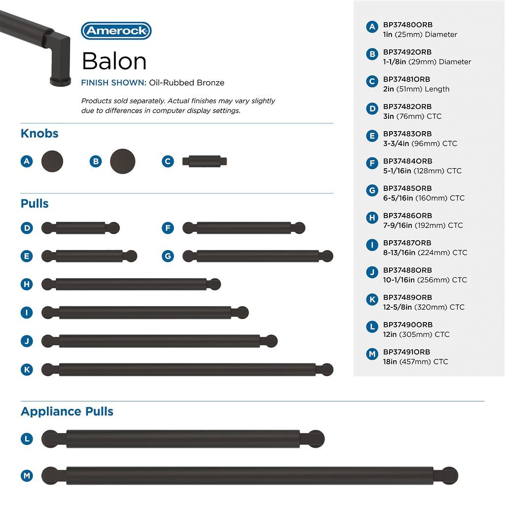 Balon Appliance Pull 12 inch CC Oil-Rubbed Bronze