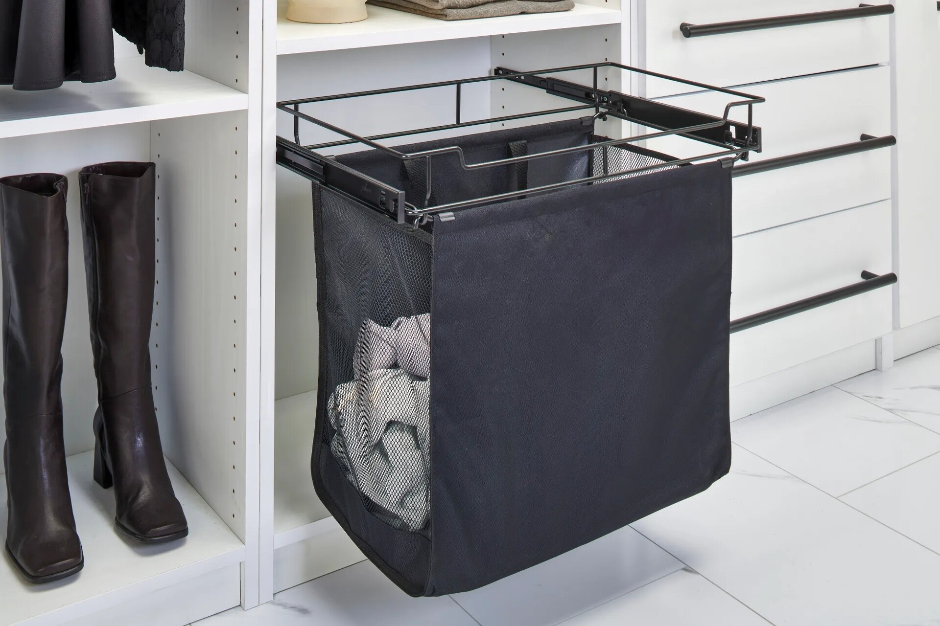Black Hamper Pullout w/ 2.1 BU Canvas Bag for 24" Full-Access Closet Cabinets
