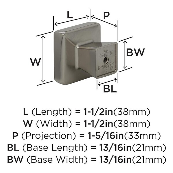 Blackrock 1-1/2" Square Knob Polished Nickel