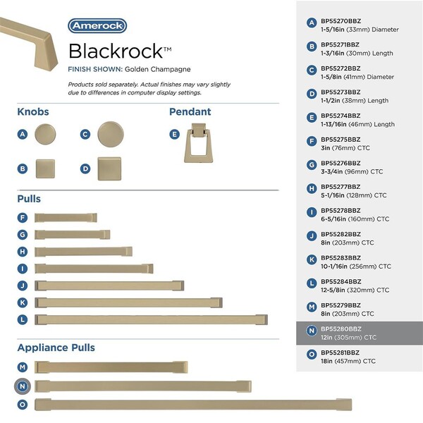 Blackrock - 12" Appliance Pull CC Golden Champagne