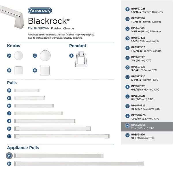 Blackrock 12" Appliance Pull CC Polished Chrome