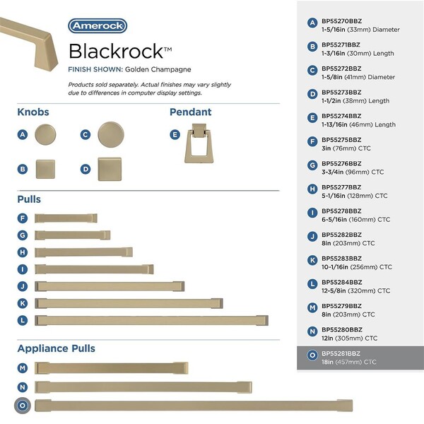 Blackrock - 18" Appliance Pull CC Golden Champagne