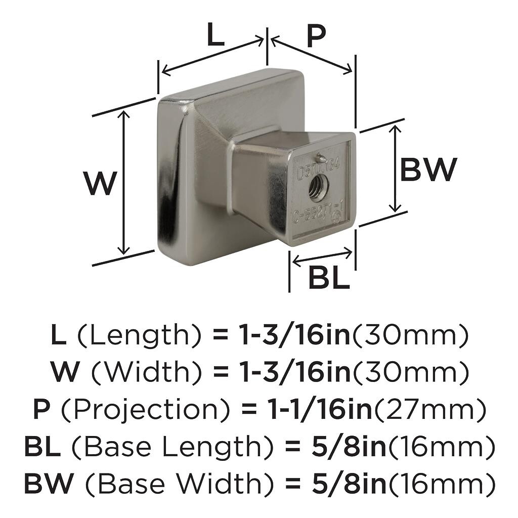 Blackrock - Knob 1-3/16" SQ Knob Polished Nickel