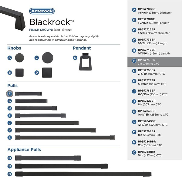 Blackrock - Pull 76mm CC Black Bronze Bar Pull