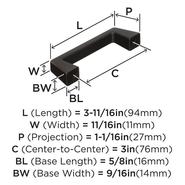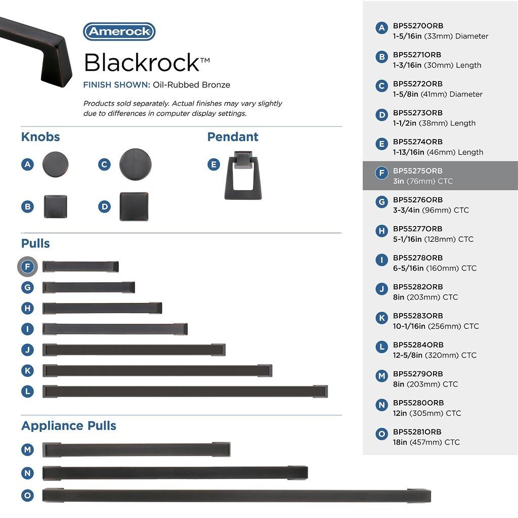 Blackrock - Pull 76mm CC Oil-Rubbed Bronze Bar Pull