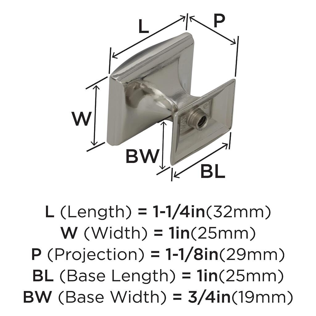 Candler 1-1/2" SQ Knob Polished Nickel