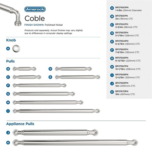 Coble Appliance Pull 12 inch CC Polished Nickel
