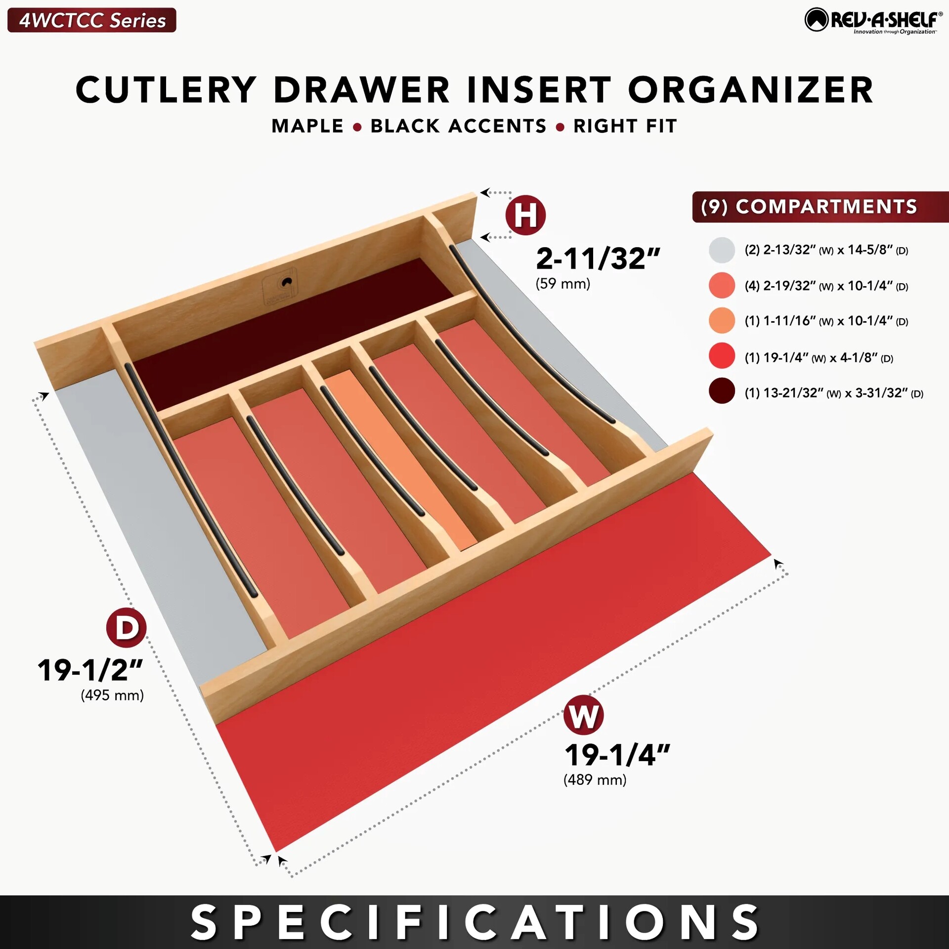 Now you can store your silverware in luxurious style with the 4WCTCC Series Craftsman Collection Right-Fit Cutlery Tray Inserts! These beautiful drawer inserts feature solid maple construction with a semi-gloss finish and recessed black wire accents for a stylish look that you can’t find anywhere else. The unique curved design provides both visual interest and even easier access to the contents of the drawer. Includes a removable black non-skid vinyl mat.