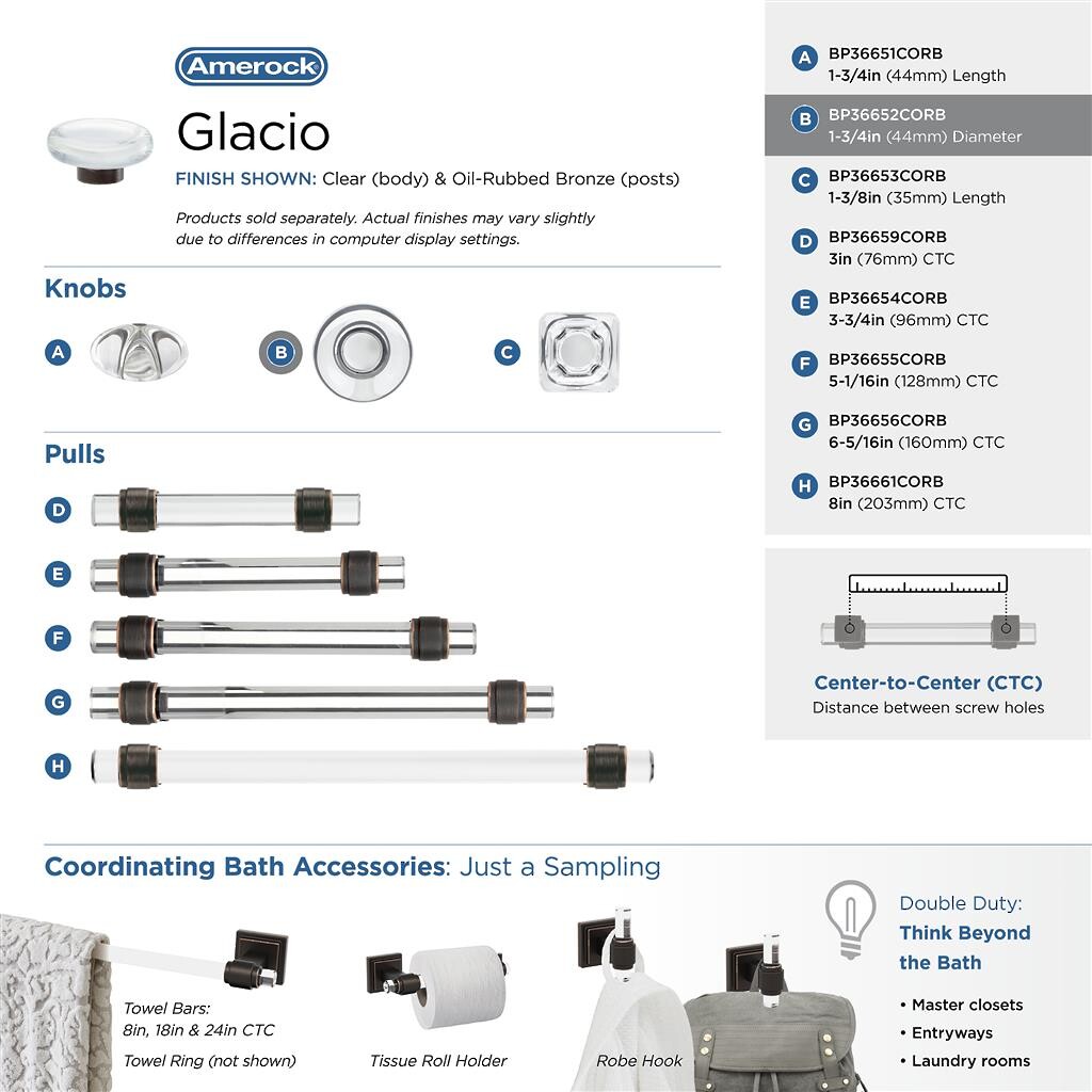 Glacio Knob 44mm Diameter Clear Crystal/Oil-Rubbed Bronze