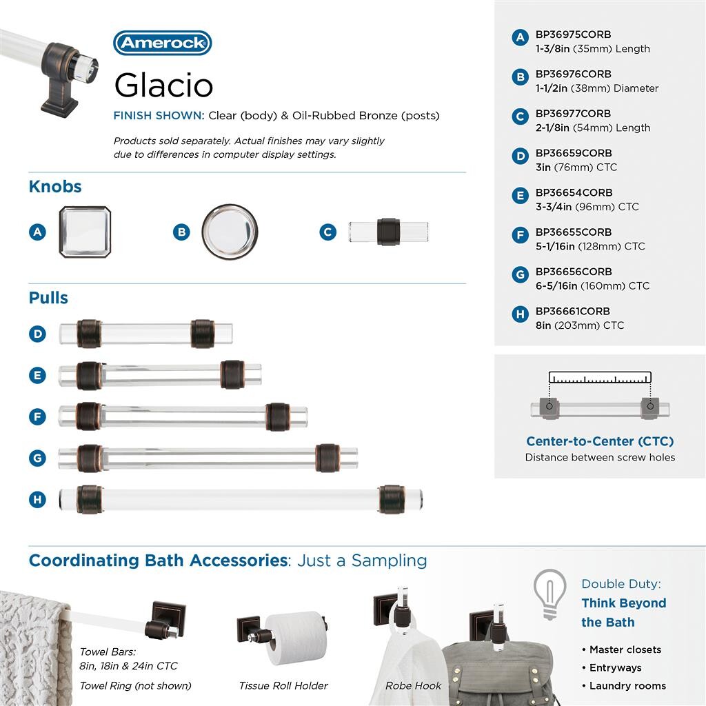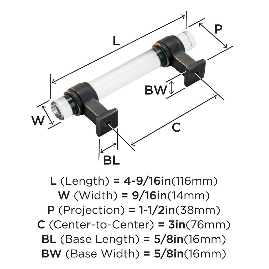 Glacio Pull 3 inch CC Clear/Oil-Rubbed Bronze