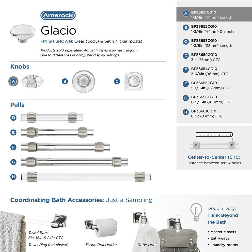 Glacio Pull 8 inch CC Clear/Satin Nickel
