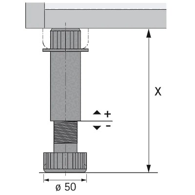 A robust and reliable height-adjustable leg designed for furniture and cabinetry installation as part of the Hettich Euro levelling system. This 100 mm levelling foot provides smooth, tool-free height adjustment to ensure perfectly level cabinets on uneven floors.