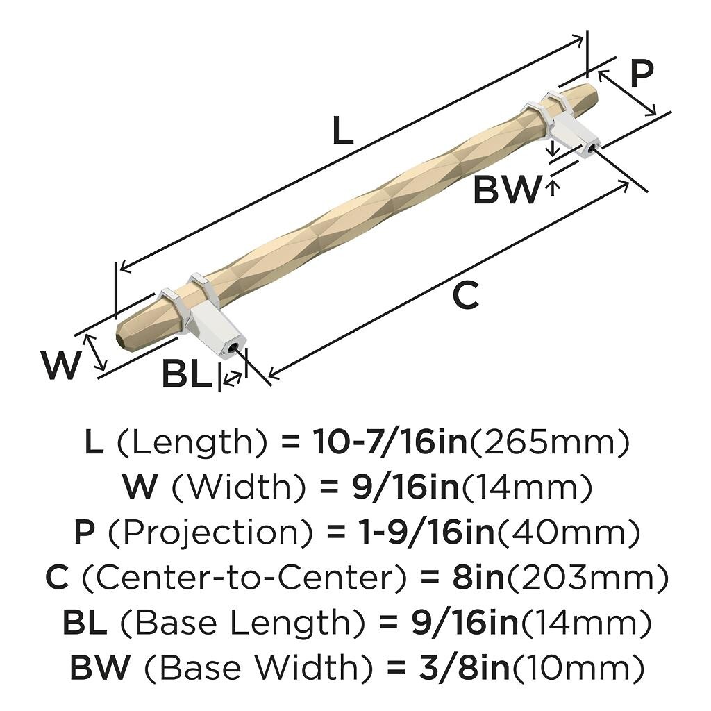 London Pull 8 inch Golden Champagne / Polished Chrome