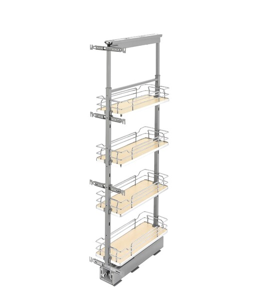 Rev-A-Shelf’s 5300 Pullout Pantry Series is the answer to your full access (frameless) cabinetry needs. The series offers basket depths for 24" deep cabinetry and comes in five different widths and four height ranges, one width available for face frame cabinets. Available in your choice of beautiful maple or contemporary gray solid bottom to match every kitchen style.
