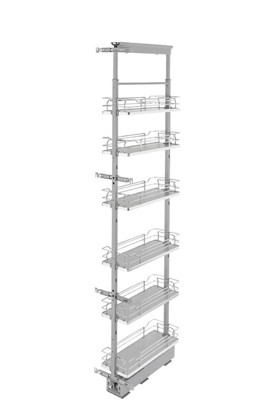 Rev-A-Shelf’s 5300 Pullout Pantry Series is the answer to your full access (frameless) cabinetry needs. The series offers basket depths for 24" deep cabinetry and comes in five different widths and four height ranges, one width available for face frame cabinets. Available in your choice of beautiful maple or contemporary gray solid bottom to match every kitchen style.