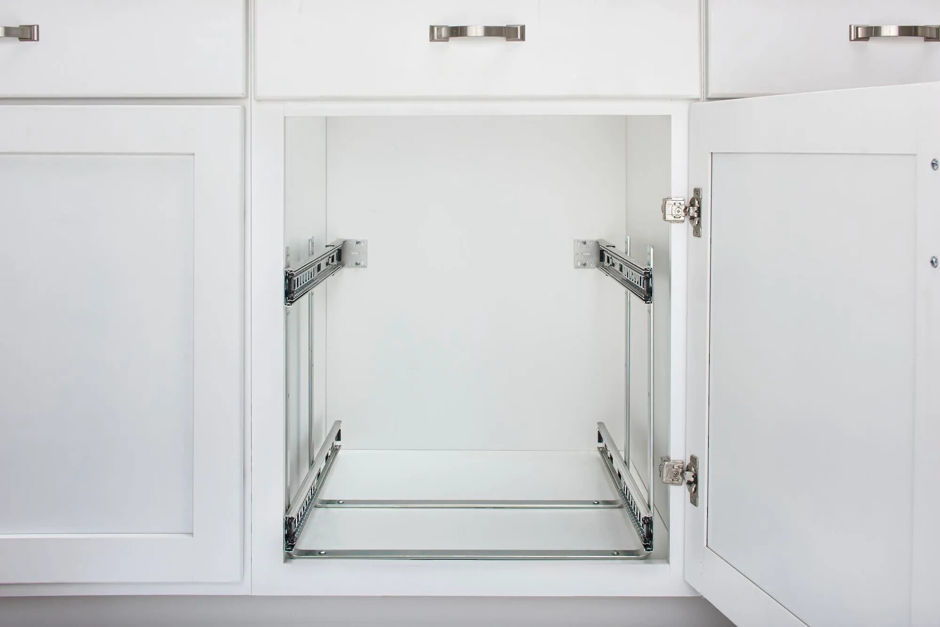 - Mounts to cabinet floor, rear and faceframe of cabinet