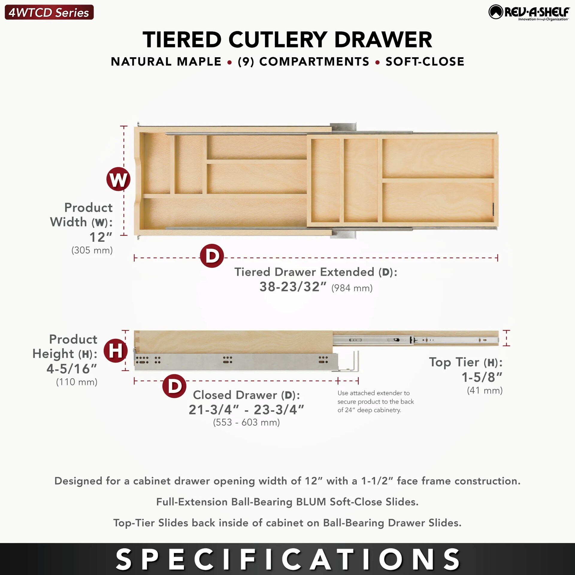 Rev-A-Shelf - 12" Opening - Complete System Two-Tier Soft-Close Cutlery Organizer