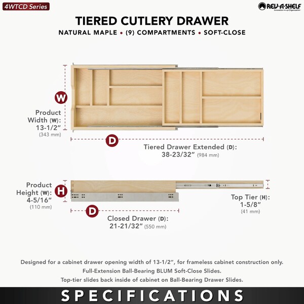 Rev-A-Shelf - 13-1/2" Opening - Complete System Two-Tier Cutlery Organizer