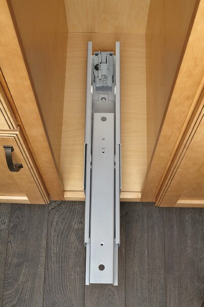 - Glides quietly on 200 lb. rated full-extension, soft-close slide system