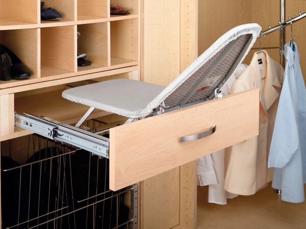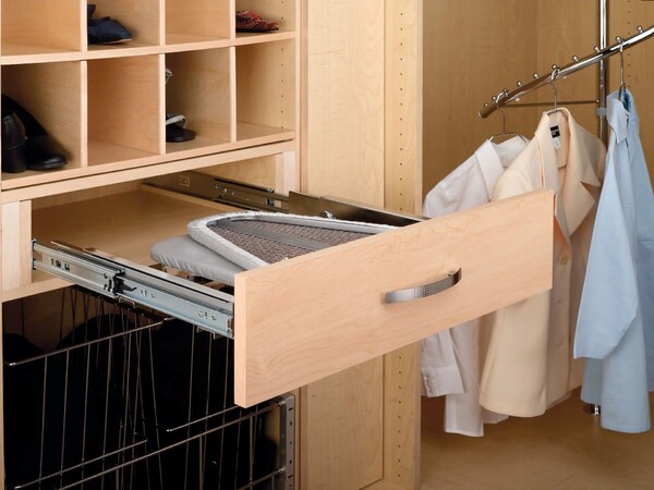 Rev-A-Shelf has ironed out the inconvenience of storing and setting up that bulky ironing board with the introduction of its CIB Series. The uniquely designed expandable frame mounts easily in a closet between panels and the fixed brackets allow for easy mounting of all standard drawer fronts. It features a chrome finish and a unique ball-bearing slide system that provides sufficient over travel for maximum utilization. Simply open until the gravity lock engages, unfold board and you are ready to iron!