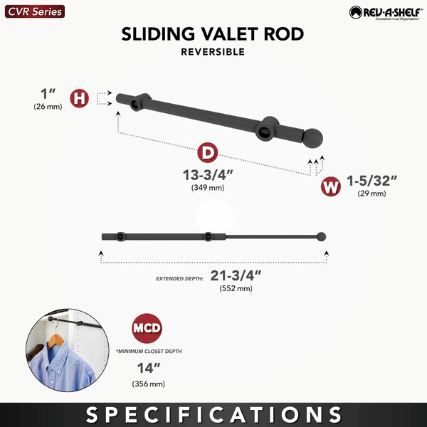Rev-A-Shelf - 14" Oil-Rubbed Bronze Valet Rod Designer