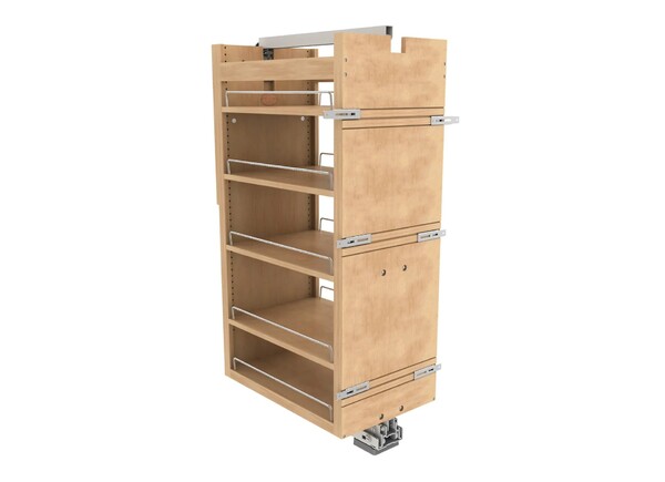 Maximize your storage space with this fabulous and functional pullout pantry. Riding on a Fulterer EZ close slide system with a top guide rail, it has stability that is second to none. The natural maple frame and adjustable shelves are complemented by chrome rail accents and provide customization to accommodate your unique storage needs.