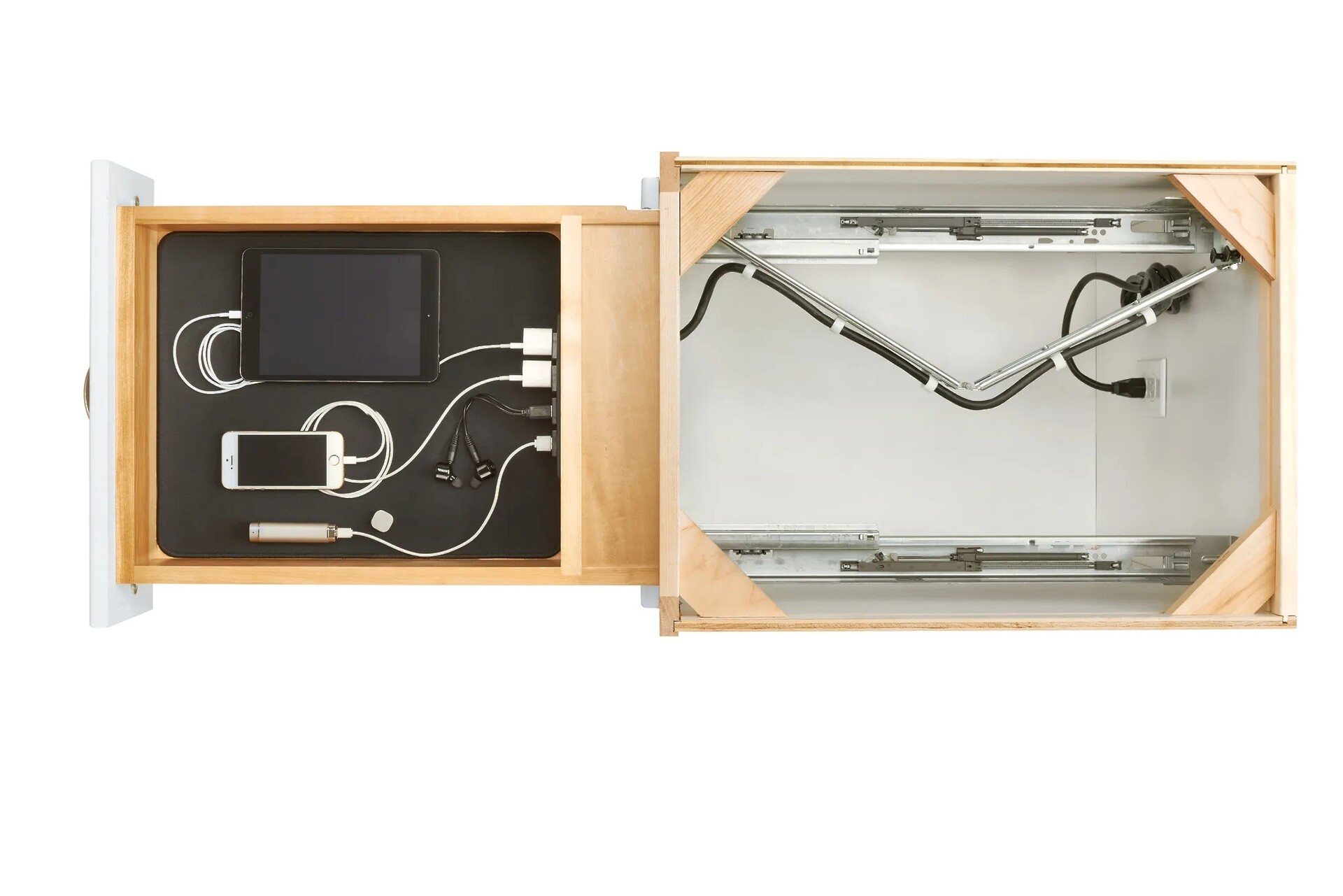 Charge all your electronics together in one location with Rev-A-Shelf's 4WCDBH Series Charging Drawer System.