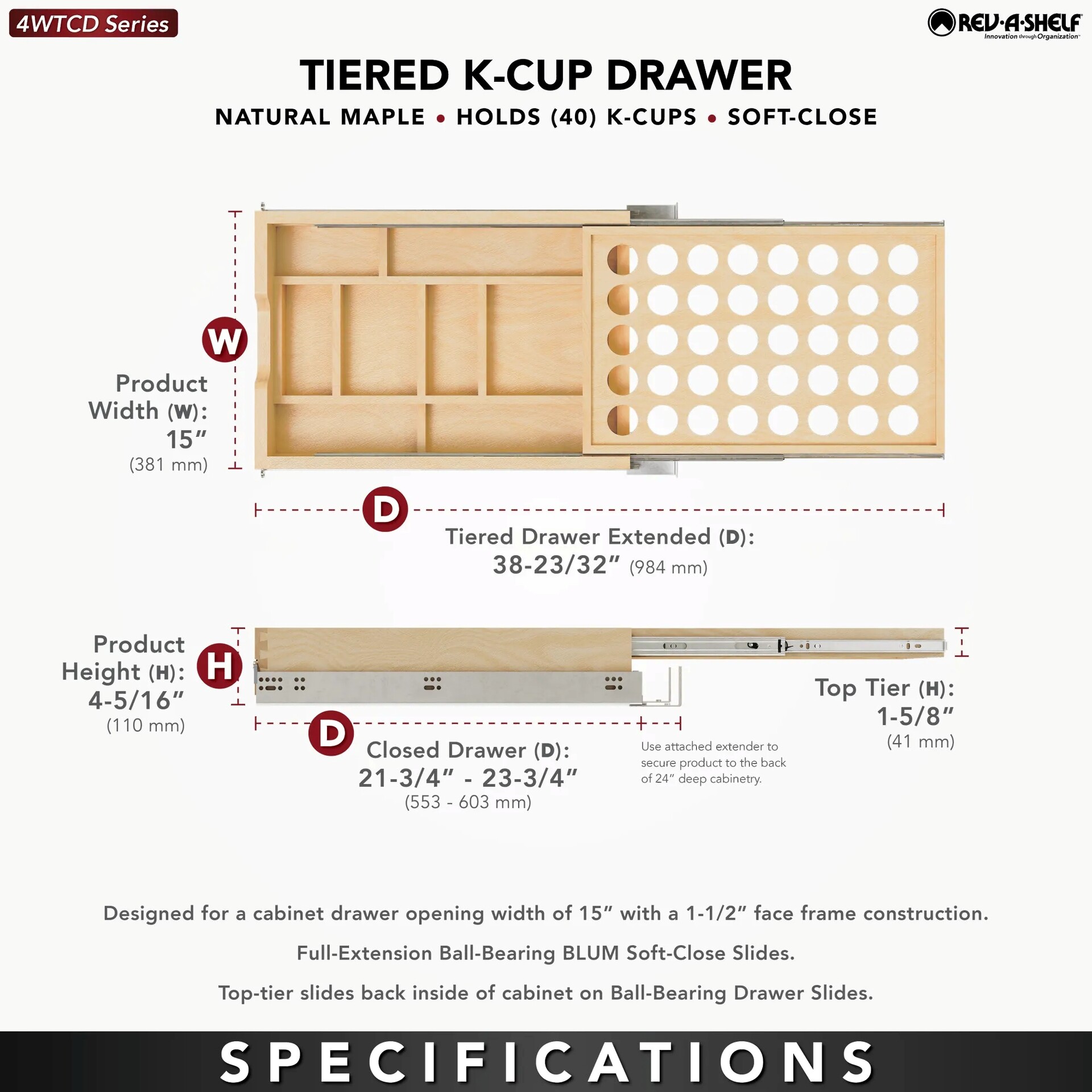 Rev-A-Shelf - 15" Opening - Complete System Two-Tier K-Cup Organizer