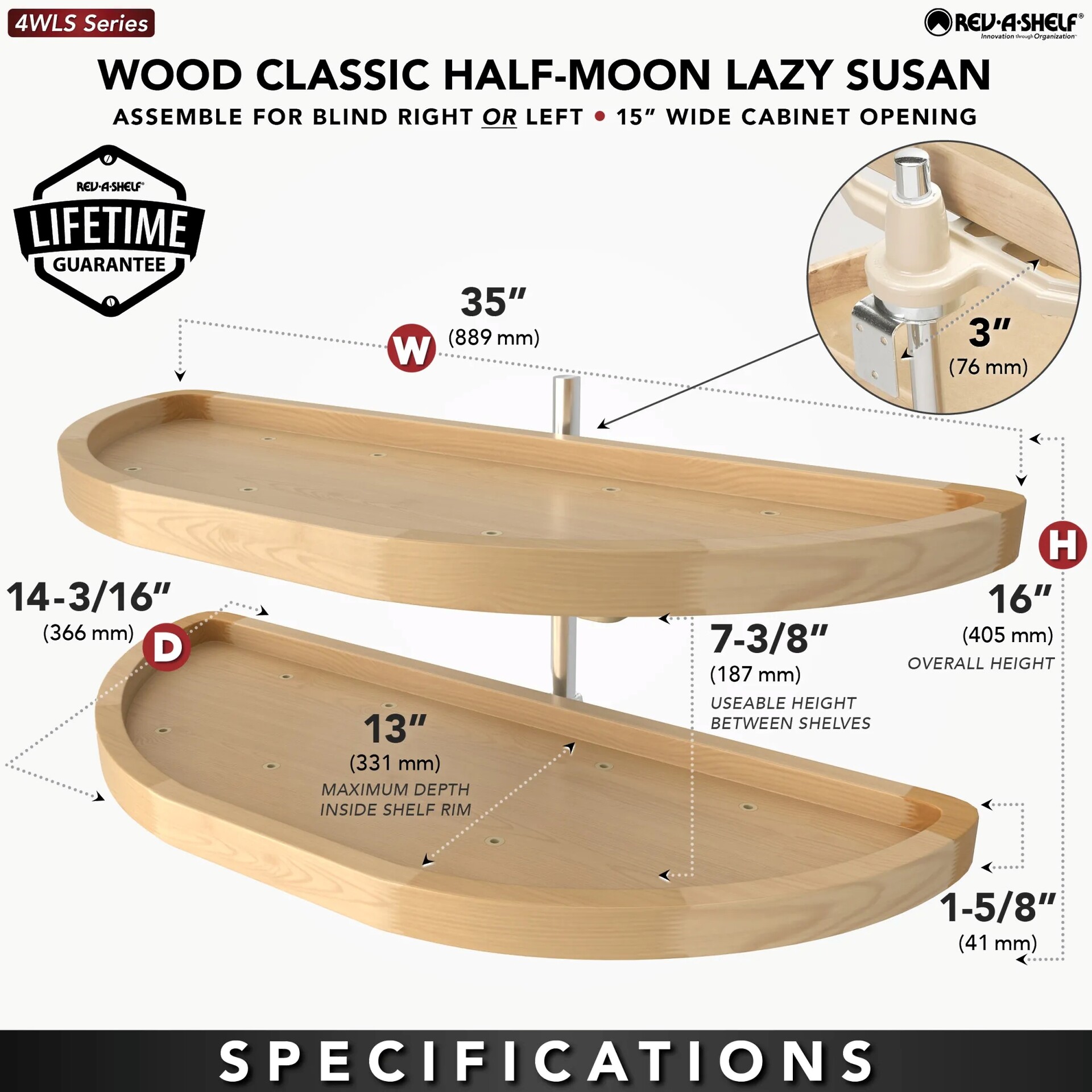 Rev-A-Shelf - 15" x 35" Lazy Susan Half-Moon Wood 2 Shelf (Pivot and Slide)