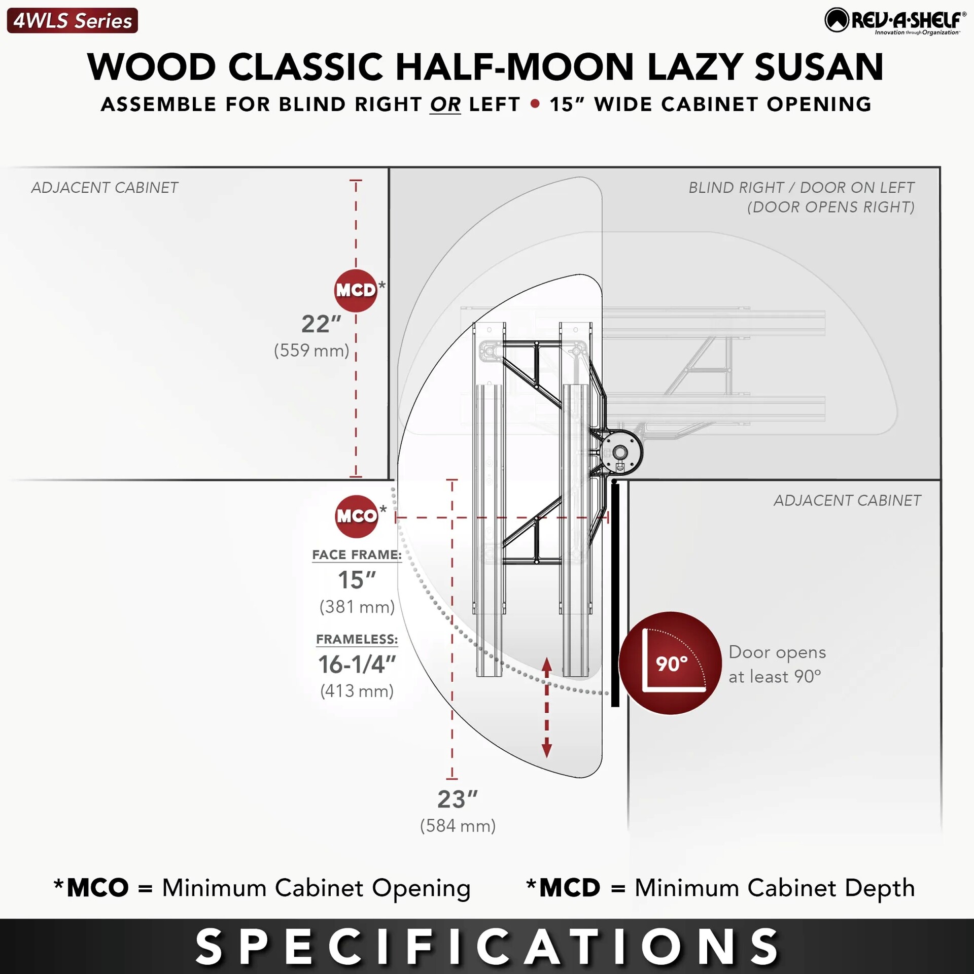 Rev-A-Shelf's 4WLS series half moon wood lazy susans are revered as the best on the market. Whether you are replacing an old unit or just adding a lazy susan to your base blind corner cabinet, you will not be disappointed with the high-quality construction and the durable pivot and pull hardware.