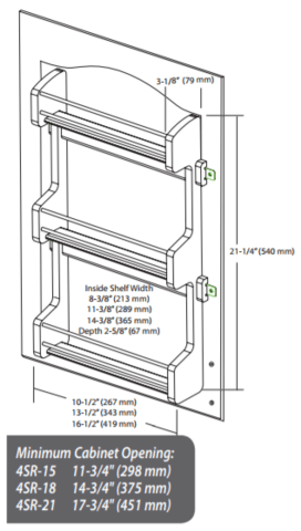 - Minimum cabinet opening - 17-3/4"