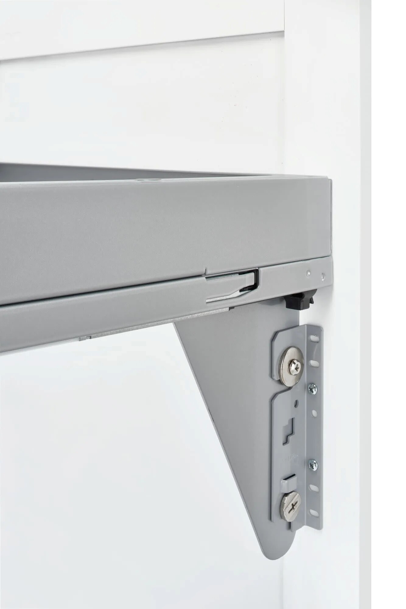 - Mounts to the side of the cabinet