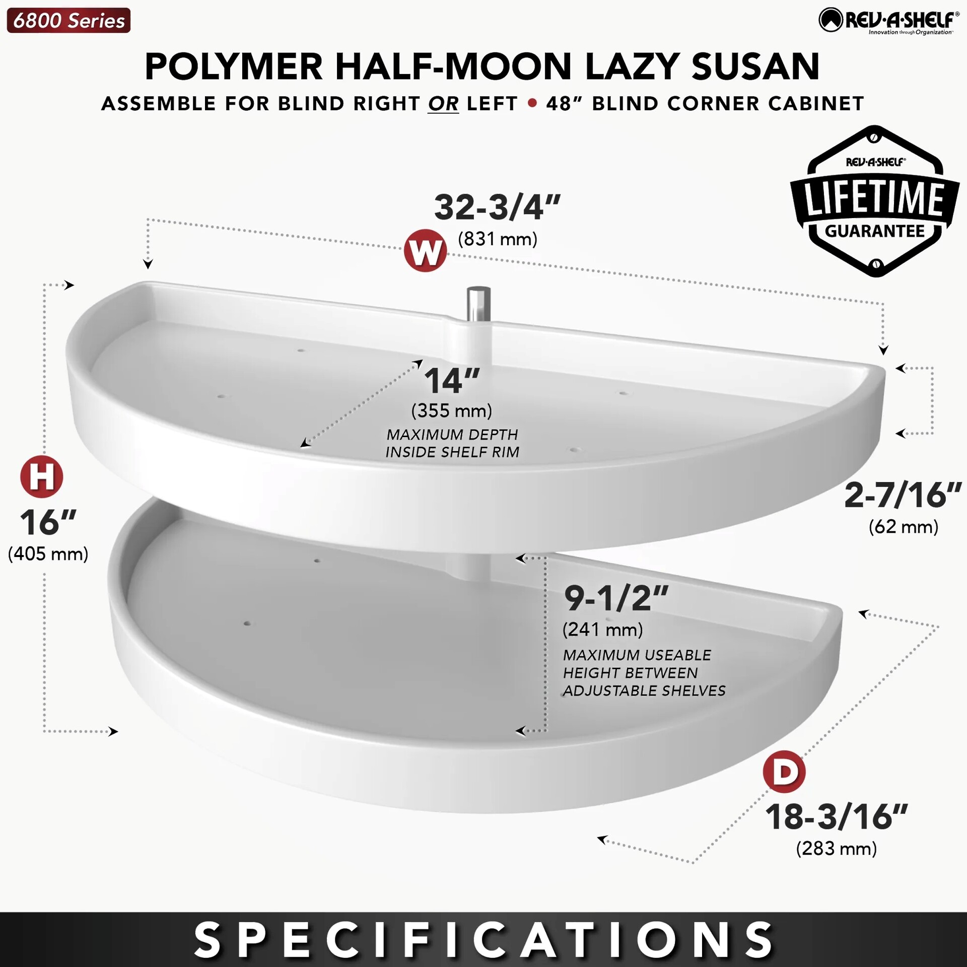 Rev-A-Shelf - 16-1/8" x 33" White Lazy Susan Half-Moon 2 Shelf (Pivot and Slide)