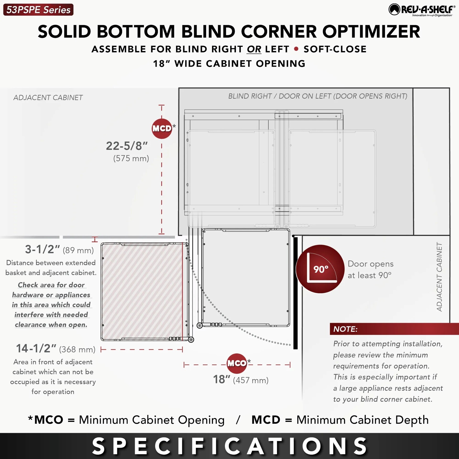 Give your blind corner cabinet an elite upgrade with the 53PSPE Series Elite Blind Corner Optimizer from Rev-A-Shelf®. This innovative solution takes functionality to the next level, featuring upper shelves that slide independently from the lower ones for easy access to every inch of your cabinet. Available in multiple sizes, finishes, and two- or three-tier configurations, this non-handed design ensures a seamless fit in both left- and right-handed applications, making installation a breeze.