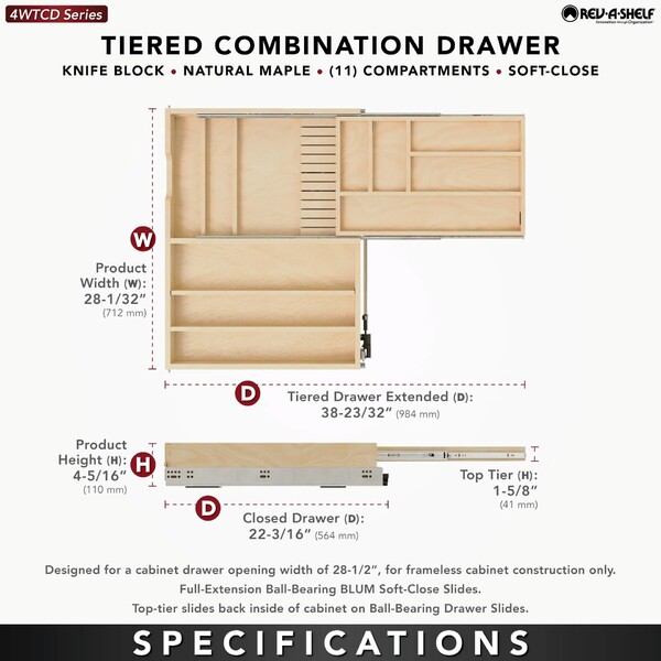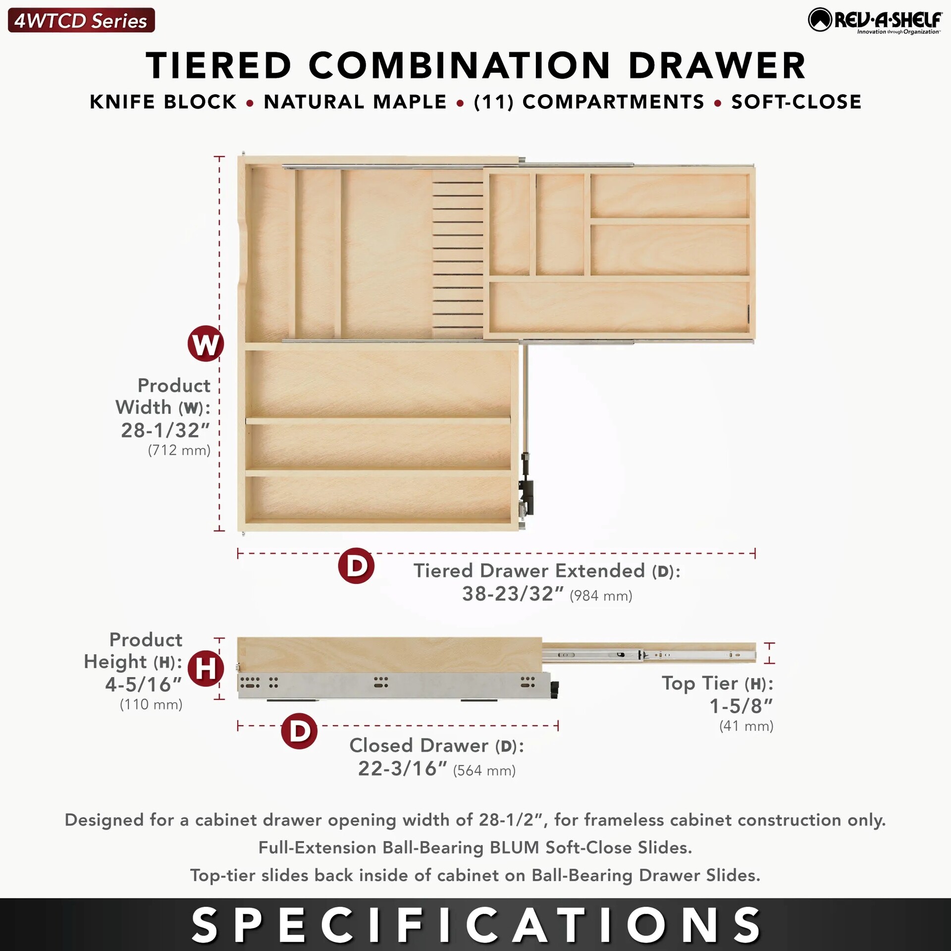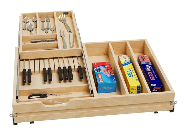 Double up your drawer space with Rev-A-Shelf's Two-Tiered drawer. This drawer box comes pre-assembled and ready to install into your existing cabinet drawer opening.