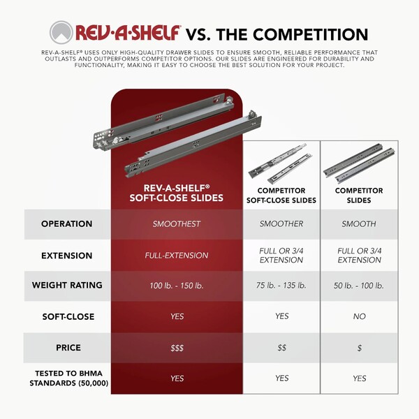 Rev-A-Shelf - 36" Chrome Wire Undersink Pullout U-Shape Basket w/ Soft-Close