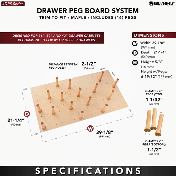 Rev-A-Shelf - 39" Maple Cut-To-Size Insert Peg System for Drawers