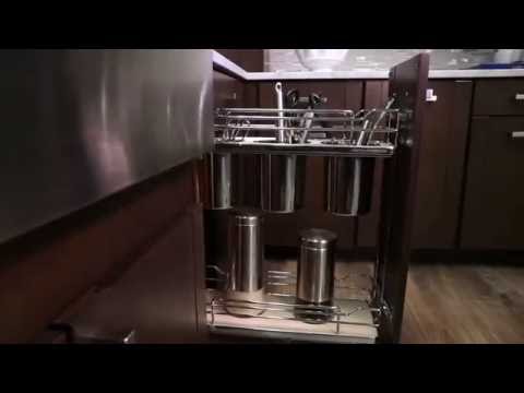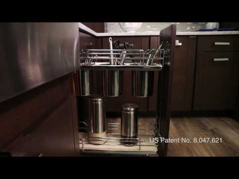 Bring the elegance of this chic design into your home with the Rev-A-Shelf 5322 Utensil Bin pullout. This Two-Tier Base Organizer combines clean lines, modern chrome accents, and your choice of luxurious grey or maple shelving surfaces to create a striking piece of organizational technology. Features patented door mount brackets and Blum soft-close slides system.