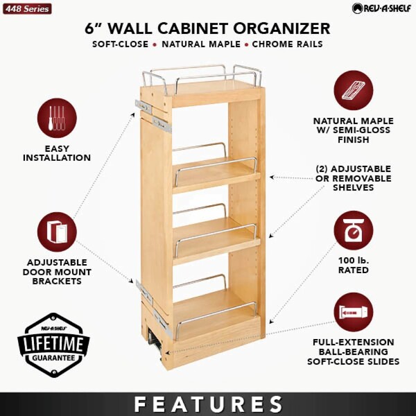 Rev-A-Shelf - 6-1/2" Cabinet Pullout Organizer with Soft-Close Wall Accessories