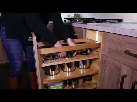 Short on drawer space and forced to use a utensil holder that you must move every time you need additional counter space? Rev-A-Shelf has the answer with our bottom and side mount utensil pullout shelving system complete with three removable bins to hold cooking utensils and more. Available in varying sizes, they door mount and come with shelves for additional storage.