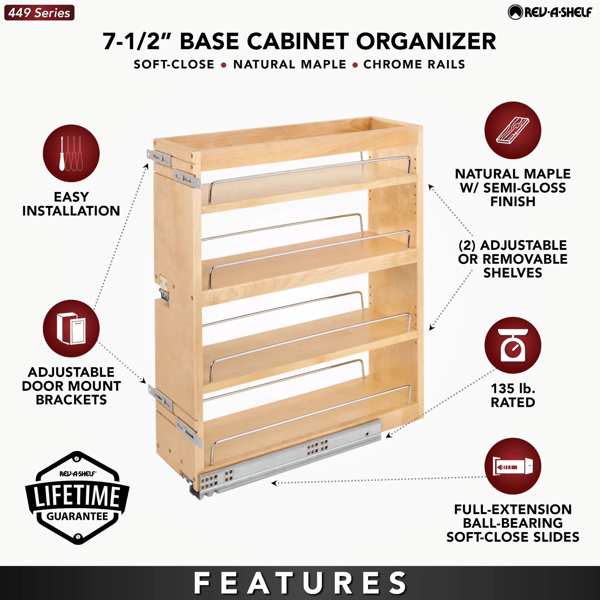 - Designed for Full access (frameless) cabinet with 3/4" and 5/8" side walls