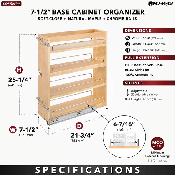 Rev-A-Shelf - 7" Bottom Mount Base Cabinet w/ Blumotion Soft-Close
