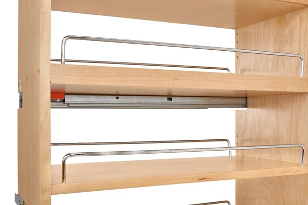 If you're tired of cluttered, unorganized and hard to access cabinets, then look no further than Rev-A-Shelf's bottom and side mount pullout shelving system. This innovative accessory pulls from the cabinet giving you complete accessibility and visibility. Available in varying sizes, they door mount..