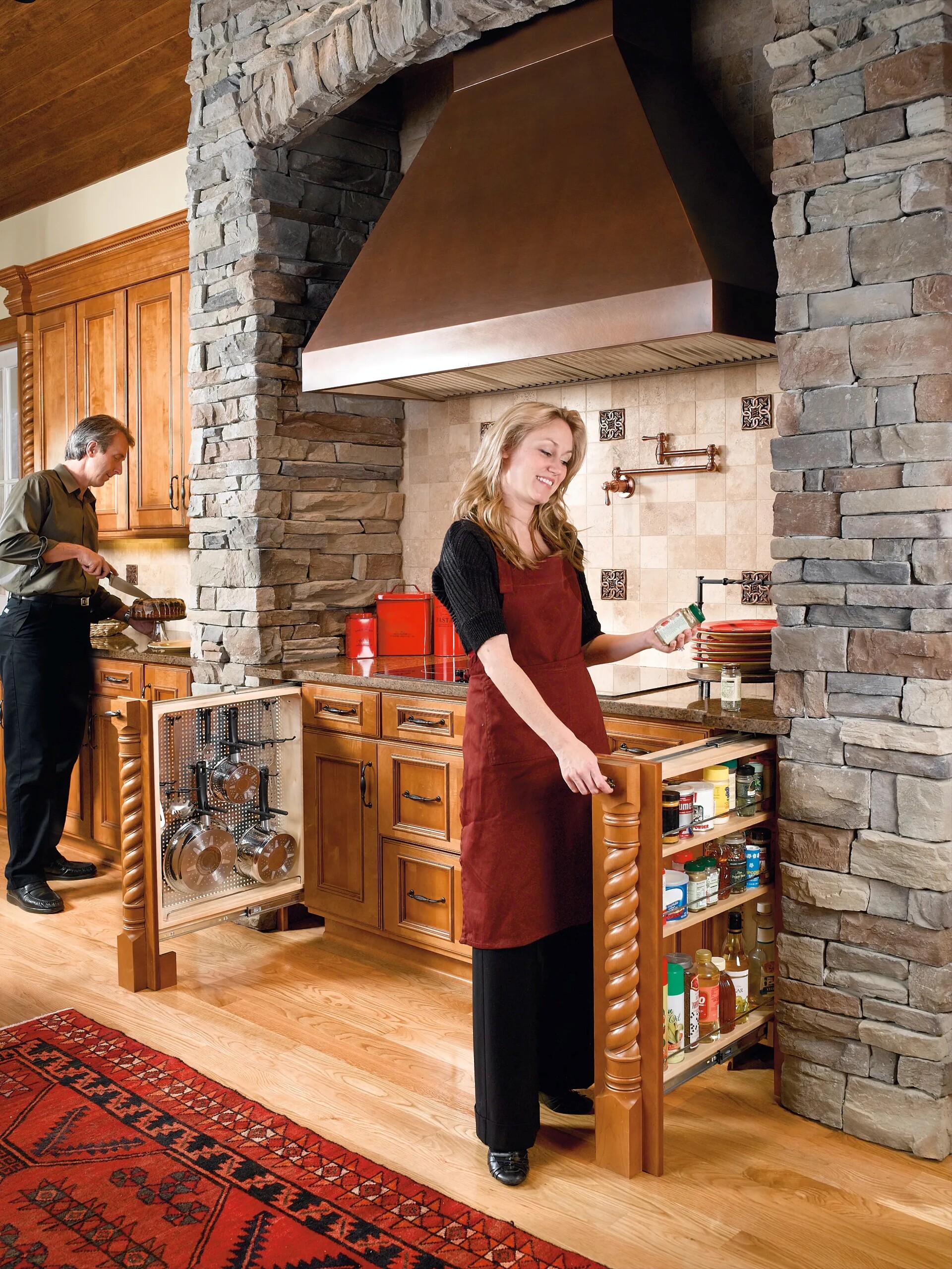 Create a functional storage space behind those decorative panels with this base filler cabinet. We didn’t’ just create another organizer...we created the whole cabinet that transforms decorative filler into useful storage pullouts. The 432 is available for 3”, 6” and 9” base cabinet applications and features adjustable shelves with chrome rails, full-extension ball bearing slides and our three slide design provides the most stable function on the market.