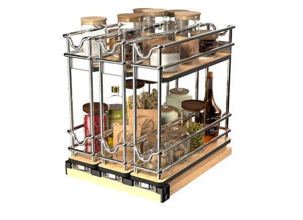 Rev-A-Shelf - 9" Two-Shelf Triple Wide Wire Wall Upright Pullout