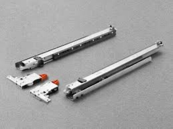 Full extension with a synchronized mechanism. Available in lengths ranging from 350mm to 500mm in 50mm increments. Enhanced smooth soft closing action. Safety system that prevents the shelves from turning over. Tool free height adjustments +2.5mm. Tool free depth adjustments +/- 3mm. Tool free side adjustments +/- 1.5mm. Finish: bright zinc-plated. 100% Made in Italy.