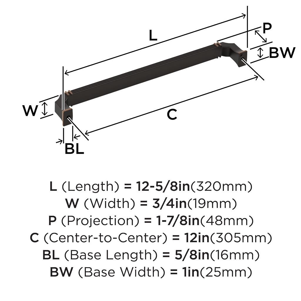 Townsend Appliance Pull 12 inch CC Oil-Rubbed Bronze